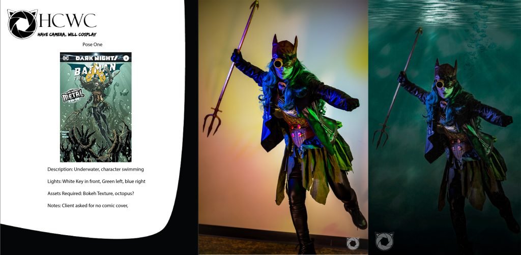 As a cosplayer, look for photographers that utilize posing workbooks to help you practice posing. If you cannot find a photographer that is willing to utilize a pose workbook, then make one yourself. It doesn’t even need to be for a photoshoot. Put one together with your build book, and incorporate both your build book and pose workbook into your cosplay. This gives you the ability to have the perfect pose every time you see a photographer on the con floor.